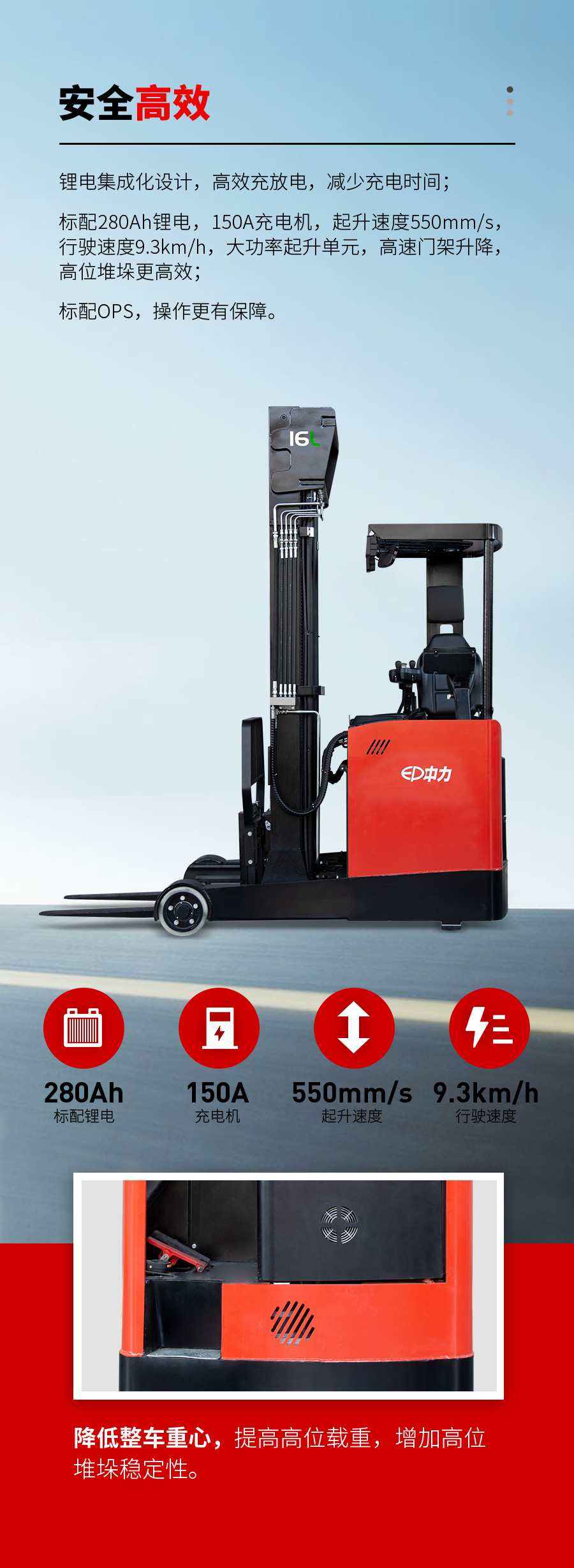 标配免维护,快充锂电;